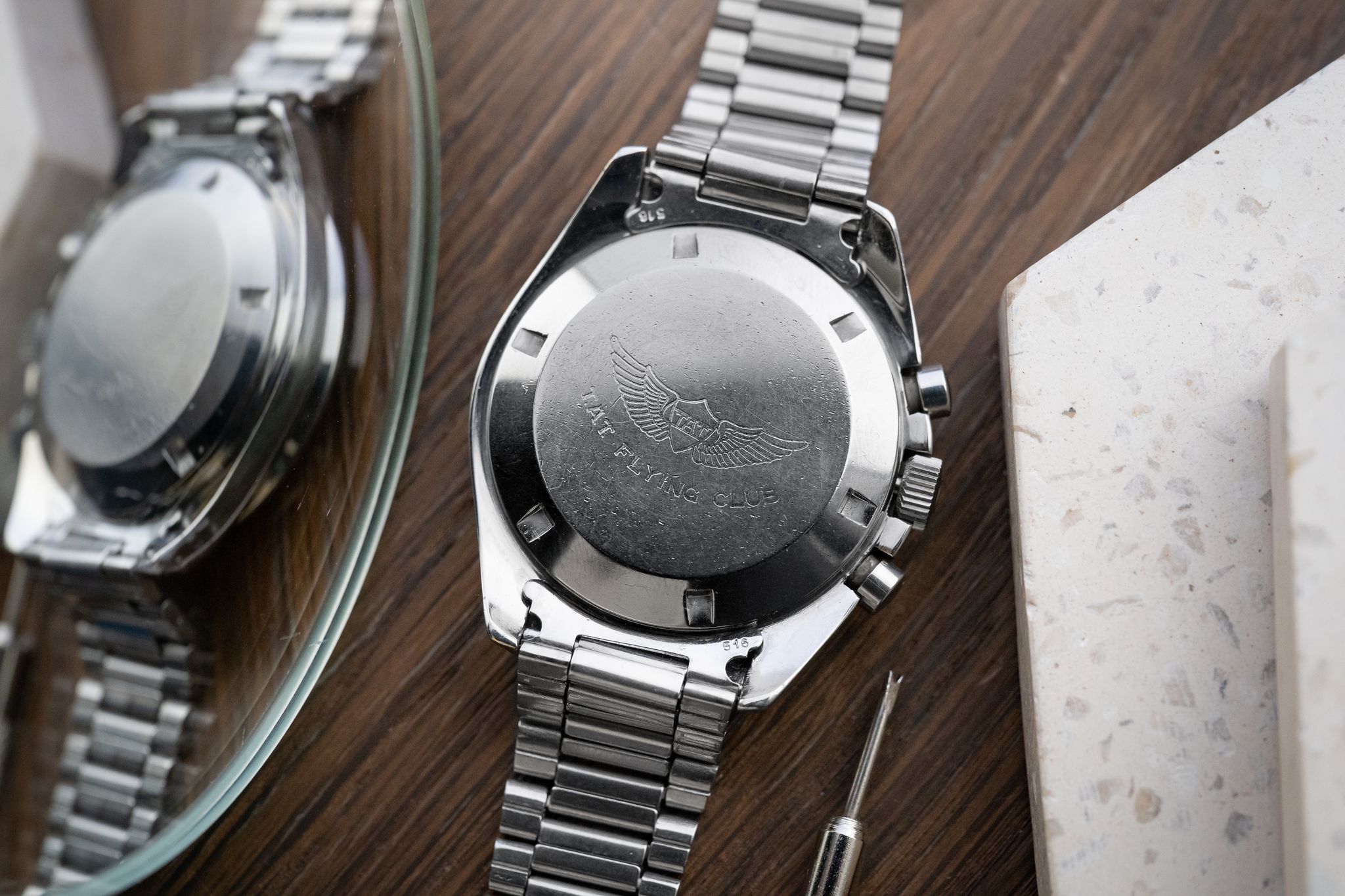 We are looking at one of those charming details that make the vintage world so special: this caseback, this engraving.
